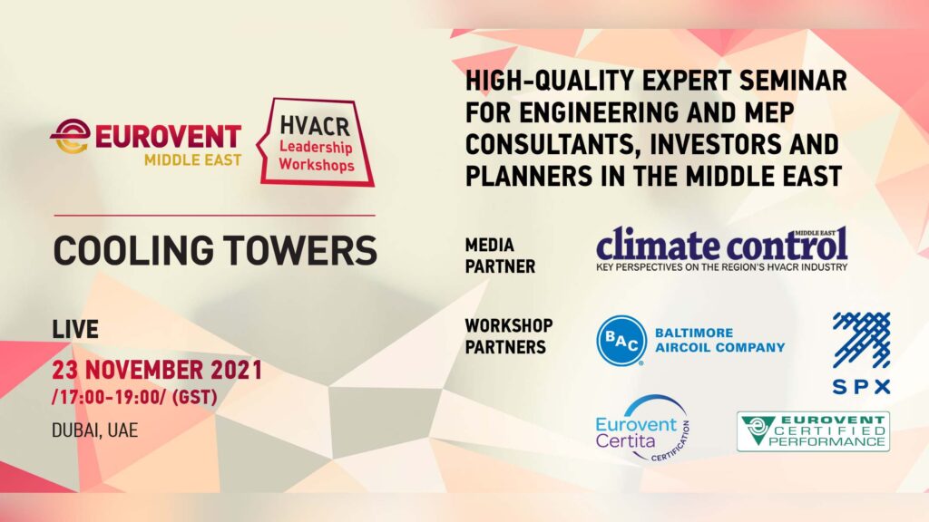 ‘HVACR Leadership Workshops’ is a seminar series by Eurovent Middle East, tailor-made for engineering and MEP consultants, investors, and planners in the Middle East, with the core aim of informing them about standards and industry recommendations in the field of ventilation, air conditioning and refrigeration. The non-commercial, free-of-charge seminars are spread across multiple workshops.